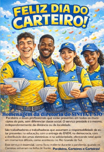 O Sintect-SJO presta uma justa e sincera homenagem a esses trabalhadores e trabalhadoras que, com dedicação, coragem e compromisso, levam muito mais do que correspondências: levam informação, cidadania e conexão a cada bairro, cidade e comunidade.