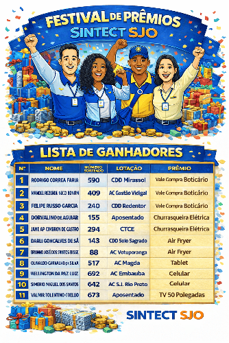 É o SINTECT SJO trabalhando e pensando em você.